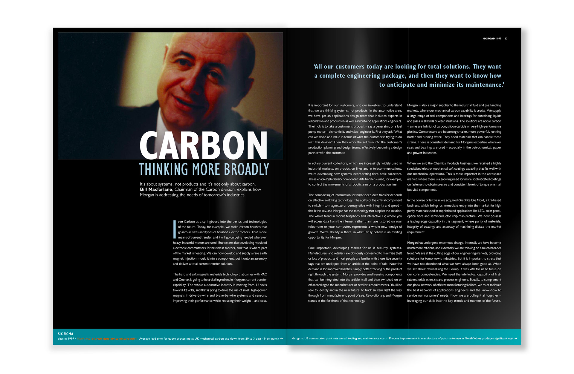 Another project from our archive this time our annual report for Morgan Advanced Materials, formerly Morgan Crucible. The front cover uses detail images of two hi-tech components in carbon and ceramic to represent Morgan's materials technology.